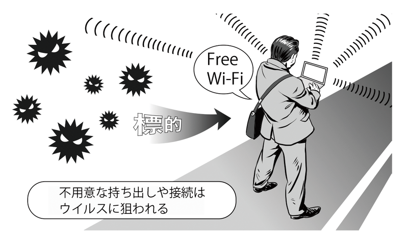 街なかのフリーWi-Fiに注意だ公共施設をはじめ街なかには多くのAP(アクセスポイント)が設置されている。だが、APすべてが万全のセキュリティ対策を講じているとは限らない。中には利便性を追求し最低限の対策に留めるAPも存在し、使い方によっては通信内容を盗まれる可能性がある。 また必ずしも『暗号化=安心』というわけではない。例えば「偽AP」だ。この場合、暗号化に関係なく通信内容が盗まれる。 便利なフリーWi-Fiだが利用する際、少なくとも次の点は確認だ。 ・接続するフリーWi-FiのAP名の確認 ・接続後、ID・パスワード等の入力画面になった場合、URLが「https://」で始まっているか ・ブラウザーに鍵マークが表示されているか 特にテレワーク等、機微な情報を扱う際は不特定のAPは避けるべきだ。