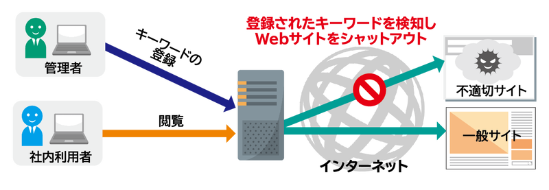 ブラウザーに対し入力するキーワードを管理者が事前に規制します。