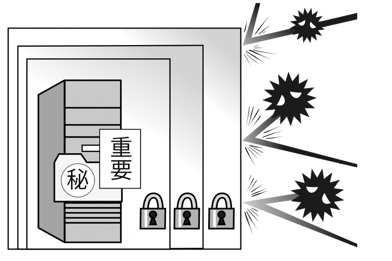 ネットワークを経由した感染と情報流出を防ぐために、最重要情報についてはネットワークに接続をしていないスタンドアロンのパソコンで管理し常時ネットワークには接続しない。