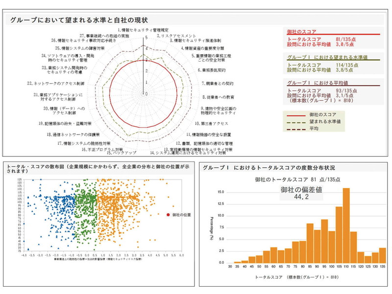 情報セキュリティ対策ベンチマークは、設問に答えるだけで、自社のセキュリティレベルを他社との比較で診断することのできるシステムです。