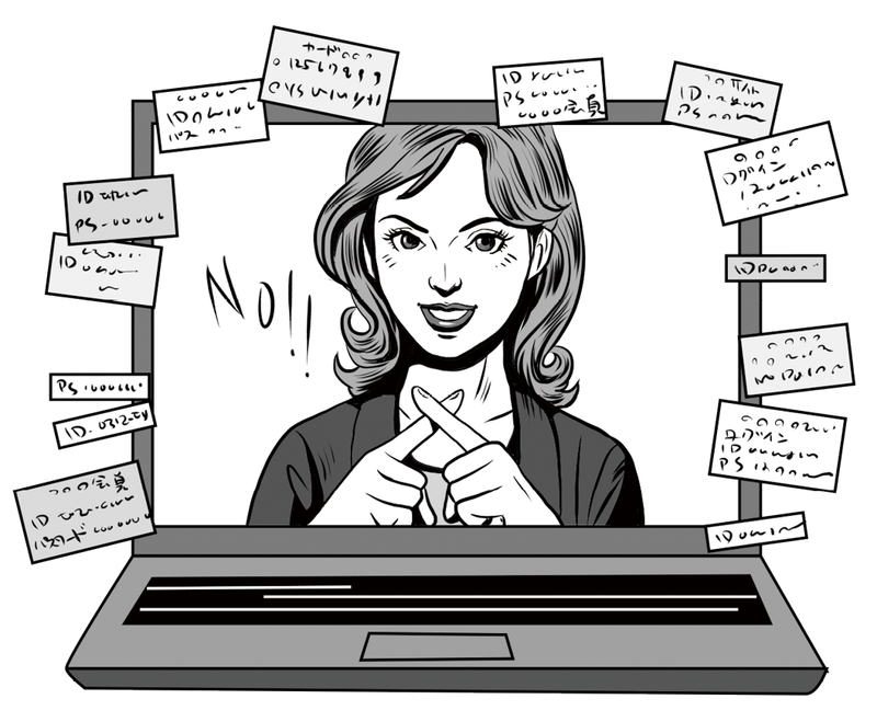 パソコン本体はもちろん、メールやSNS、各種アプリや会員サイトなどのWebサービスを使うときに必要となるのがID(アカウント)とパスワード。1つのパスワードを使い回している場合、それが流出すると、ほかのサービスも乗っ取られてしまう可能性が高くなります。