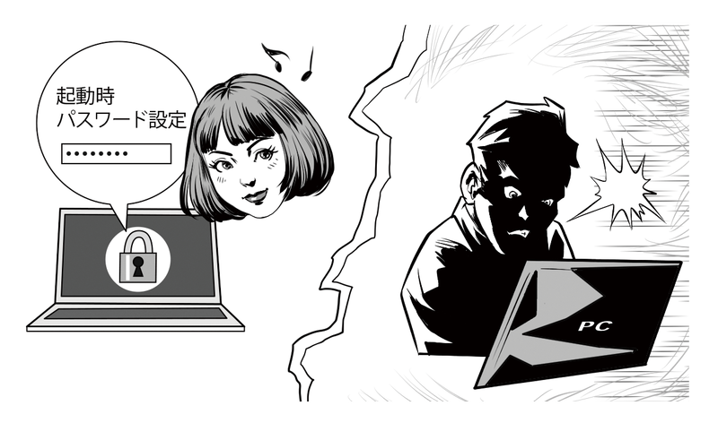パソコンやモバイル端末などの情報が収められた機器は、起動の際にパスワードをかけたり、ファイルそのものにもパスワードを設定したりするなどの対策を事前に行っておくことで、盗難・紛失時に情報を簡単に見られないようにすることができます。