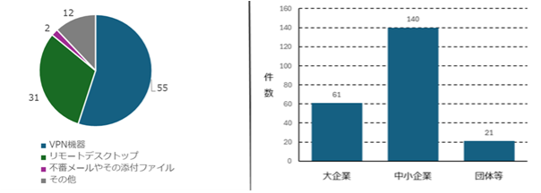 図14.(令和6年)ランサムウェアの感染経路(件数)(左図)