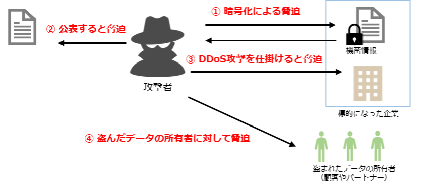 図16. ランサムウェアの二重、四重脅迫のイメージ図