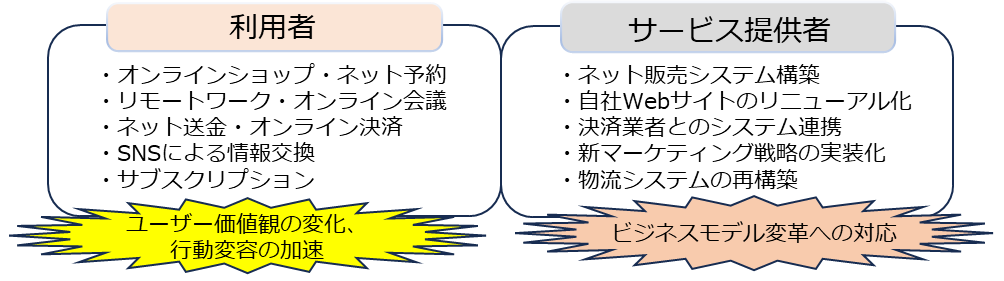 ITの普及により、私たちはより価値のあるサービスを利用することが可能になりました。例えば、インターネットを介して必要な情報を瞬時に入手したり、オンラインショッピングサイトを利用して、広範囲の商品を比較して購入したりすることができるようになりました。