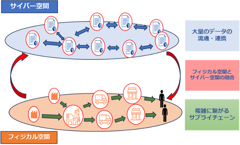 今後の社会では、サプライチェーンにおけるフィジカル空間とサイバー空間とのつながりが重要視されています。そして、Society5.0に合ったサプライチェーンに変化することで、従来のサプライチェーンもより柔軟で効率的なものになります。