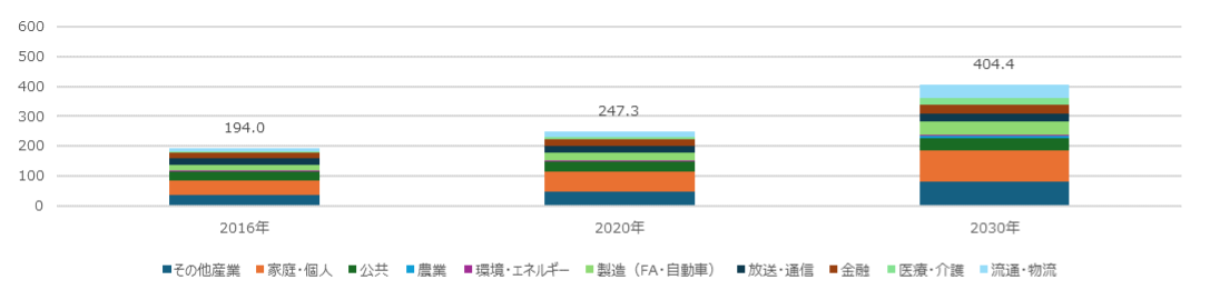 (出典)JIETA「CPS/IoT世界市場の利活用分野別需要額見通し」をもとに作成