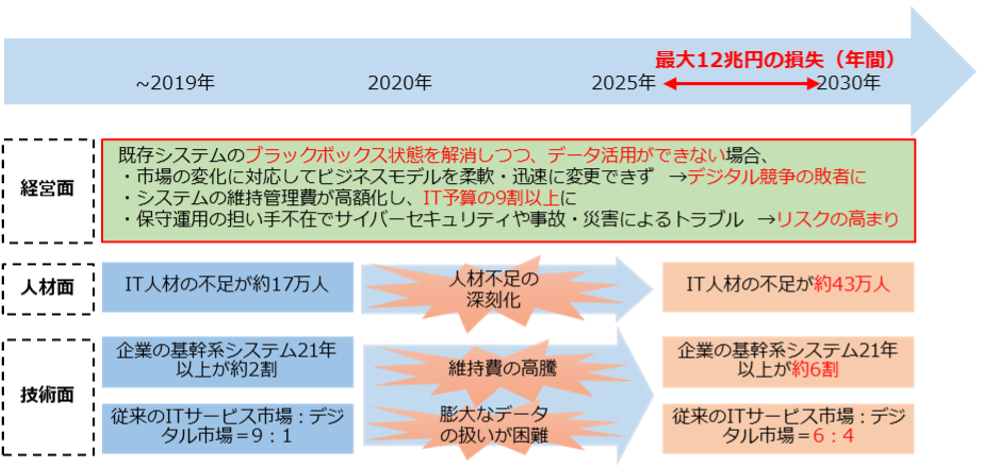 (出典)経済産業省「DXレポート ~ITシステム「2025年の崖」の克服とDXの本格的な展開~」をもとに作成