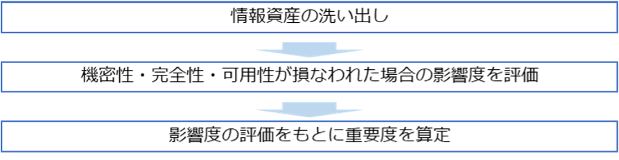 情報資産ごとに「機密性」「完全性」「可用性」が損なわれた場合の事業への影響度を評価します。