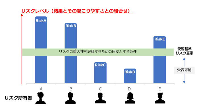 あるリスクに対して、どの程度のレベル感や優先順位でリスク対応を実施するのか、リスクが顕在化した際にどの程度の大きさまでなら許容するのかを明確にする必要があります。 |