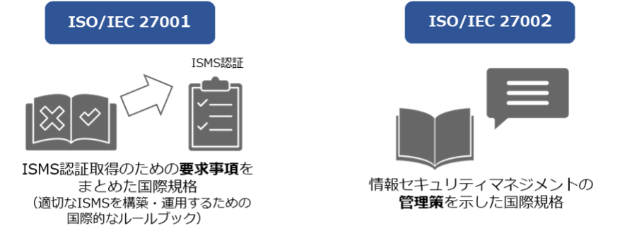 ISO/IEC 27001に記載されている要求事項をもとに、具体的な情報セキュリティマネジメントの管理策を示した規格としてISO/IEC 27002があります。ISO/IEC 27001の付属書Aは、このISO/IEC 27002の内容をそのまま取り入れたもので、情報セキュリティ上のリスクを低減するための目的と、その目的を達成するための管理策で構成されています。