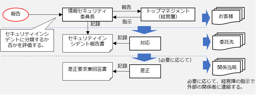 セキュリティインシデントを、時機を失せずに報告するために、関係当局の連絡方法を明確にすることが大切です。 |