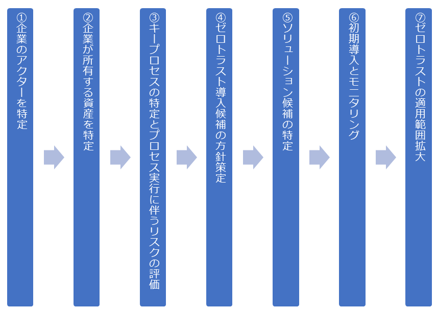 ゼロトラスト導入の各プロセスで実施すべき内容を説明します。