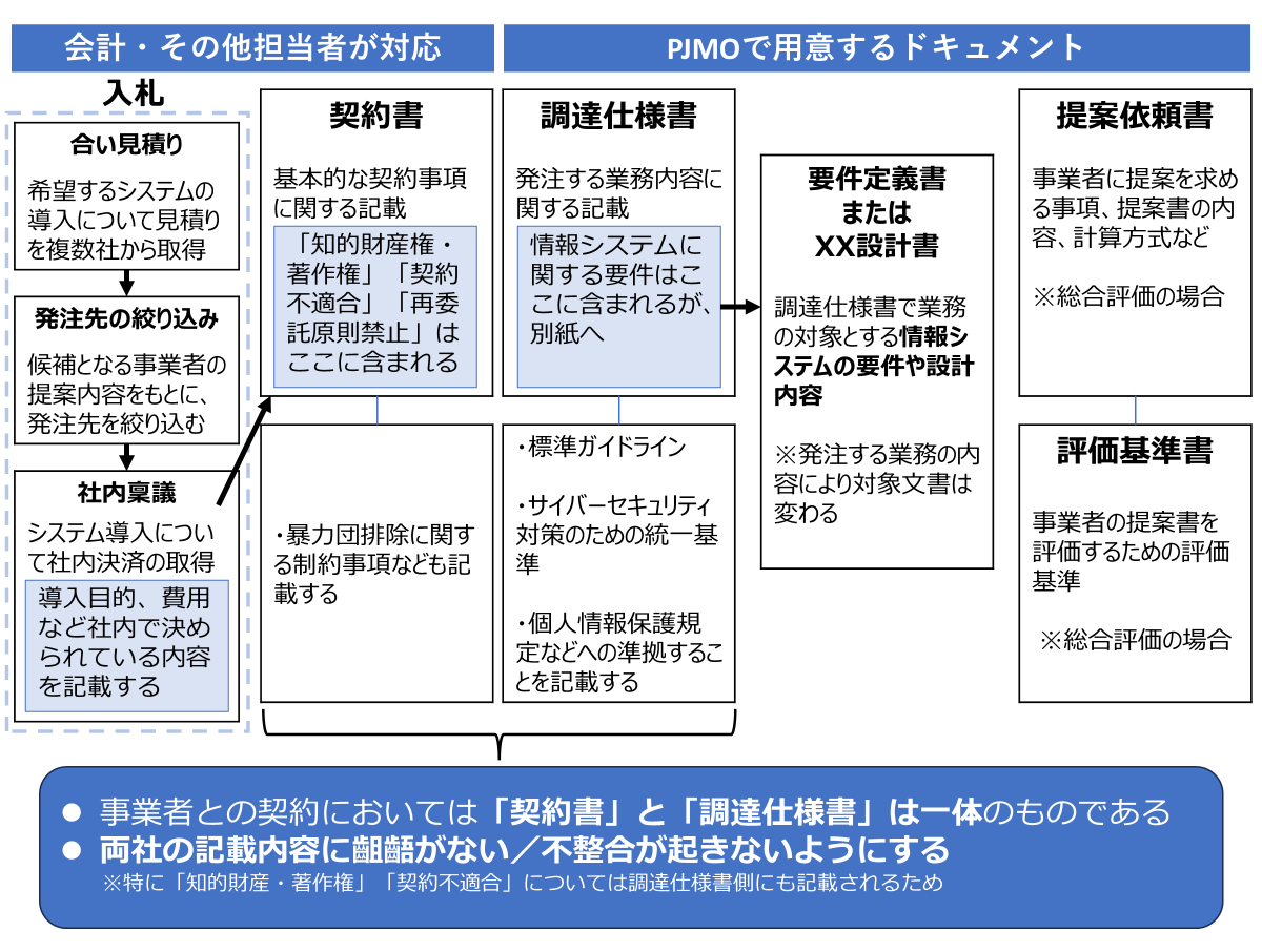 1. 調達の事前準備 2. 調達仕様書の作成 3. 調達仕様書以外のドキュメント作成 4. 調達手続きとプロジェクト管理 5. 検収 |